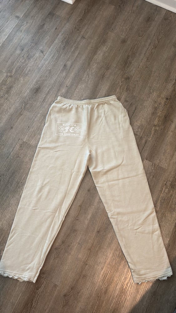 OPEN BOTTOM SWEATPANTS DISTRESSED (CREAM)